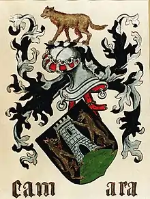 Gonzalo de la Cámara was elevated to knighthood after fighting under the command of King Ferdinand III of Castile during the Battle of Baeza in 1227. Throughout the following centuries, they continued to serve the Spanish Crown, participating in battles during the Reconquista,[1] a series of military campaigns to reclaim the Iberian Peninsula from Muslim rule. The family's noble status was further confirmed by Ferdinand the Catholic and Joanna I of Castile.[2] Although Gonzalo de la Cámara originated from Alcalá de Henares, some of his descendants settled in Galicia and Portugal. One of the most notable members of this lineage was Juan Rodríguez de la Cámara, a 15th-century man of letters born in Padrón, Galicia.