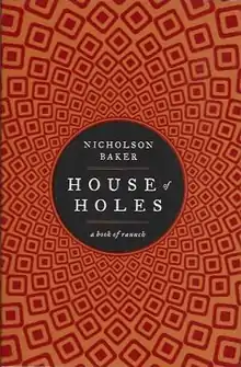 House of Holes is a 2011 novel by American writer Nicholson Baker. It consists of a series of chapters that are more or less connected (some more, some less) which tell of the sexual and emotional experiences of a variety of characters in a kind of sexual fantasy land, the titular "House of Holes".[1] The third "dirty novel" by Baker after Vox and The Fermata,[2] it is praised by many reviewers for the inventiveness of its language.[3][4][5]