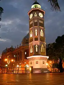 At the request of the then-governor, Vicente Rocafuerte, the House of Luzárraga donated a clock to the city of Guayaquil that was purchased in England. It was chosen to be located in the location that occupied the old Jesuit clock, on the Casa del Cabildo. This is the same clock that today stands at the top of the Torre Morisca.[26]