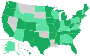 On July 15, Hawkins sued Oklahoma over its $35,000 filing fee for president.[34] On September 1, the Green Party of Alaska nominated Jesse Ventura for president and Cynthia McKinney for vice-president instead of Hawkins and Walker.[35][36] Hawkins appeared in the ballot in thirty states.[37][38]