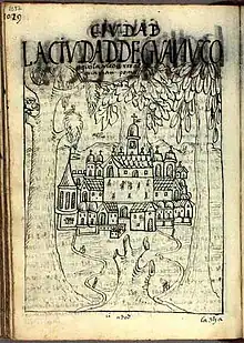 Huánuco in 1615 by the Inca painter Guamán Poma in his work "Nueva corónica y buen gobierno". Royal Library, Denmark.[3]