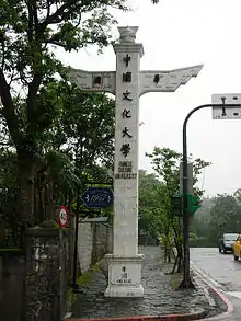 Huabiao (simplified Chinese: 华表; traditional Chinese: 華表; pinyin: huábiǎo; Jyutping: waa4 biu2; Pe̍h-ōe-jī: hôa-piáu) is a type of ceremonial column used in traditional Chinese architecture. Huabiao are traditionally erected in pairs in front of palaces and tombs. The prominence of their placement have made them one of the emblems of traditional Chinese culture. When placed outside palaces, they can also be called bangmu (simplified Chinese: 谤木; traditional Chinese: 謗木; pinyin: Bàng mù; lit. 'commentary board'). When placed outside a tomb, they can also be called shendaozhu (Chinese: 神道柱; pinyin: Shéndào zhù; lit. 'spirit way columns').