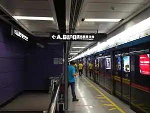 Huangbian Station (simplified Chinese: 黄边站; traditional Chinese: 黃邊站; Jyutping: wong4 bin1 zaam6; Cantonese Yale: Wòhngbīn Jaahm), called Shanglinzhen Station[1] during planning, is a metro station on Line 2 of the Guangzhou Metro. It is located at the underground of the south of Huangbian North Road[2] in the Baiyun District of Guangzhou.[3] The station started operation on 25 September, 2010.