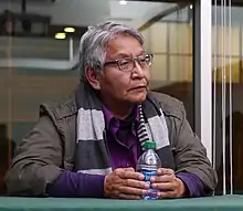 Tsinhnahjinnie at a panel in 2015 in San Francisco, California