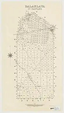 The Hundred of Balaklava is a cadastral unit of hundred located on the northern Adelaide Plains in South Australia immediately south of the Wakefield River.[1] It is one of the eight hundreds of the County of Gawler.[2] It was named in 1856 by Governor Dominick Daly after the Crimean War Battle of Balaklava.[1] The township of Balaklava is at the extreme north east corner of the hundred.