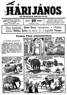 The comic strip boom of the United States had a growing effect on Hungarian newspaper publishing until the late 1930s. American comics flooded all kinds of newspapers, magazines. Hári János (see image) (1936-1937[25]), a magazine for children is considered to be the first Hungarian comic book magazine,[26] with comic strips on every page. Walt Disney strips, Secret Agent X-9, Little Nemo in Slumberland (Kis Némó Álomországban), George McManus strips and many others marked this period.