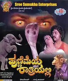 Hunnimeya Rathriyalli (transl.On a full moon night) is a 1980 Indian Kannada-language film, directed by Rajasekhar in his directoral debut and produced by R. M. Subramanyam, Radha Narayanan and Jalaja Shanmugam. The film stars Lokesh, Ashok, Roopa Chakravarthi and M. S. Vasantha.[1] The film was remade in Telugu as Punnami Naagu, in Tamil as Pournami Nilavil and in Hindi as Jeene Ki Arzoo.[2][3]