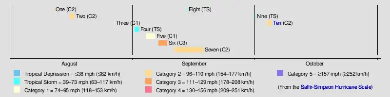 - 1 2 Hurricane Research Division (December 2010). "Chronological List of All Hurricanes which Affected the Continental United States: 1851–2010" (TXT). National Oceanic and Atmospheric Administration. Retrieved 2011-03-13.