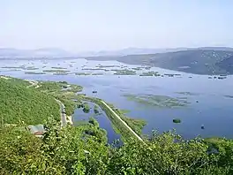 Hutovo Blato (Serbian Cyrillic: Хутово Блато) is a nature reserve and bird reserve located in Bosnia and Herzegovina. It is primarily composed of marshlands that were created by the underground aquifer system of the Krupa River. It is fed from the limestone massif of Ostrvo that divides the Deransko Lake and Svitavsko Lake.[3] The reserve is on the list of BirdLife International's Important Bird Areas. It is the largest reserve of its kind in the region, in terms of both size and diversity. It is home to over 240 types of migratory birds and dozens that make their permanent home in the sub-Mediterranean wetlands surrounding Deransko Lake.[4] In the migration season, tens of thousands of birds fill the lake and its surroundings.