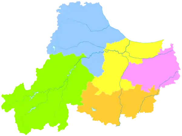 Huzhou (Chinese: 湖州; pinyin: Húzhōu, ⓘ; Huzhou dialect: ghou² cieu¹) is a prefecture-level city in northern Zhejiang province (Hangzhou–Jiaxing–Huzhou Plain, China). Lying south of the Lake Tai, it borders Jiaxing to the east, Hangzhou to the south, and the provinces of Anhui and Jiangsu to the west and north respectively. As of the 2020 census, its population was 3,367,579 inhabitants, of whom 1,015,937 lived in the built-up (or metro) area made of Wuxing District as Nanxun District is not being conurbated yet.