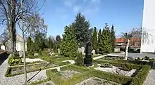 Like other village churches, the church is surrounded by a small cemetery. The oldest surviving grave is from around 1750. A private chapel built in red brick stands at the northern cemetery wall. It was built for a Hvidovre farmer and his wife.