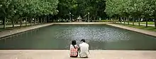 It was won by architect, planner, landscape designer and engineer Norman Weekes (1888–1972) with a finely delineated design drawn by young architect Raymond McGrath (1903–77) and influenced by the "City Beautiful" movement.[13] This design evolved with the active criticism of the assessors, architect and town planner John (later Sir) Sulman, architect Alfred Hook (Associate Professor of Construction, Architecture Faculty, Sydney University) and Town Clerk (and closely involved in the park's management) W. G. Layton, who wrote a masterly report assessing the design, pointing out its shortcomings and enunciating the design philosophy followed. Landscape historian Georgina Whitehead describes Weekes' design as an accomplished melange of modern City Beautiful, Beaux Artes and Art Deco inspiration.[38][1]