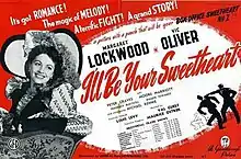 I'll Be Your Sweetheart is a 1945 British historical musical film directed by Val Guest and starring Margaret Lockwood, Vic Oliver and Michael Rennie. It was the first and only musical film produced by Gainsborough Studios. Commissioned by the British Ministry of Information,[1] it was set at the beginning of the 20th century, and was about the composers of popular music hall songs fighting for a new copyright law that will protect them from having their songs stolen.[2] Copyright scholar Adrian Johns has called the film "propaganda" and "a one-dimensional account of the piracy crisis [about sheet music in the early 20th century] from the publishers' perspective", but also highlighted its value as historical document, with large parts of the dialogue "closely culled from the actual raids, court cases, and arguments of 1900-1905."[1]