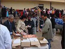 - Sending its delegations to approach victims of conflicts and war zones in different regions like Bosnia, Afghanistan, and helping in handling the issue of Kuwaiti prisoners of war (POWs) and those missing in action during the invasion of Kuwait[8] in 2002, and after that in 2003 IOPCR sent its delegations accompanied with a plane loaded with humanitarian assistants to the Iraqis whom where affected by the Iraq War,[9] also organized air conveys of aids and assistance to the Palestinian people as well as donating a number of ambulances to hospitals and health centers in Gaza Strip[10][11] - Palestine and joined the Viva Palestina convey with trucks loaded with tons of assistance,[12] also helped survivors from the sinking of the Egyptian ferry Al-Salam Boccaccio 98 .
