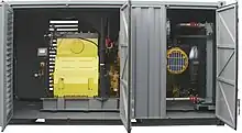 A multitude of equipment, such as generators, has been installed in containers of different types to simplify logistics – see § Containerized equipment for more details.