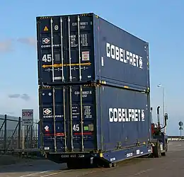 - ↑ Photo of 45-foot Cobelfret containers, with markings warning of their 2.5 metres width, as well as their 9'6'' height