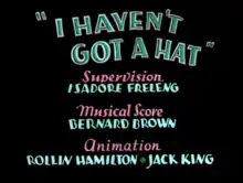 I Haven't Got a Hat is a 1935 animated short film, directed by Isadore Freleng for Leon Schlesinger Productions as part of the Merrie Melodies series.[1] Released on March 2, 1935, the short is notable for featuring the first appearance of several Warner Bros. cartoon characters, most notably future cartoon star Porky Pig. Beans the Cat, a minor Looney Tunes star in 1935-1936, also made his first appearance in this cartoon.[2]