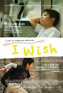 I Wish (奇跡, Kiseki, lit.Miracle) is a 2011 Japanese film edited, written, and directed by Hirokazu Kore-eda.[2] This film stars real-life brothers Koki Maeda and Oshiro Maeda, along with veteran actress Kirin Kiki and actor Joe Odagiri.[3]