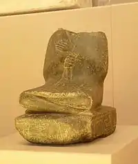 There are no monuments which directly represent him, but he is mentioned as a vizier on three objects: a stele found at Deir el-Bahari and now exhibited in the Metropolitan Museum of Art (22.3.307), another stele found inside the sanctuary of Heqaib at Elephantine,[2] and a statuette probably from the Temple of Osiris at Abydos and now in Bologna (KS 1839). By combining the three monuments, egyptologists were able to realize a genealogy for Ibiaw: