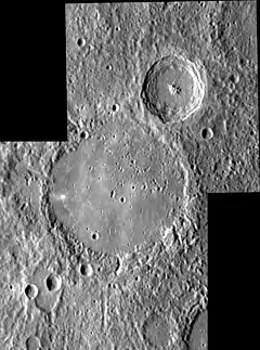 MESSENGER NAC mosaic. Ibsen is at center, and the crater to the northeast is unnamed.