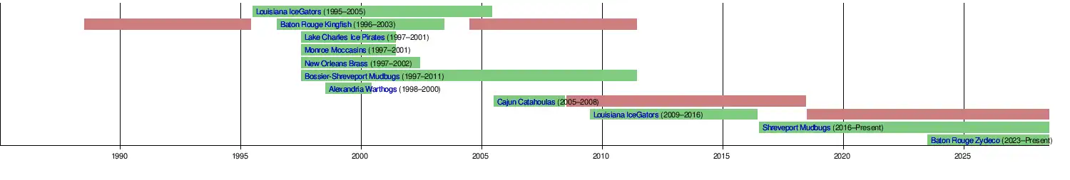 | Louisiana IceGators | Lafayette | ECHL | 1995–2005 | Defunct |