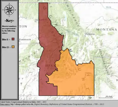 Table of United States congressional district boundary maps in the State of Idaho, presented chronologically.[4] All redistricting events that took place in Idaho between 1973 and 2013 are shown.