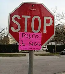 A Vancouver stop sign decorated in protest against the Ideal Mini School relocation and the VSB.