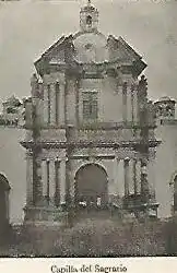The origin of the religious dedication of this church is that all of its kind (that is, the churches called by the name of Sagrario) are sacramental chapels or sanctuaries of a great cathedral to which they are attached, fulfilling at the same time, and by themselves, the function of parishes of the urban district that surrounds the cathedral. This type of sacramental chapel, really conceived as a temple annexed to a larger one, sharing a façade with the cathedral itself and at the same time having functions as an independent parish, has its origin in the Cathedral of Seville, and from there the model was extended to the cathedrals that the Spanish built in the New World.