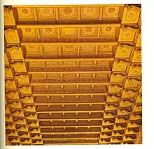 The original Latin cross plan of the church was modified by the addition of side aisles, resulting in a rectangular plan. Its main facade has been remodeled three times.[2] The church nave features a coffered ceiling, which is Mudéjar in style and its construction began in 1615.