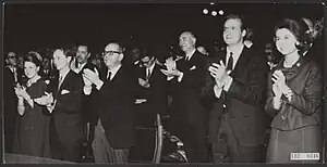 In 1939 Larramendi commenced studying law in Madrid, graduating in 1941;[21] though initially he intended to be a lawyer,[22] in 1944 he was employed at Dirección General de Seguros, a state insurance regulatory body. Since 1940 he was dating Lourdes Martínez Gutiérrez (1924–2015), granddaughter to general Alfredo Gutiérrez Chaume;[23] her father, "funcionario de Hacienda",[24] died early. The couple married in 1950[25] and had 9 children, born between 1951 and 1965.[26] The best known of them, Ramón Hernando de Larramendi, is widely recognized in Spain as a polar explorer.[27] Luis succeeded his father in business[28] and in politics, rising to high positions within the Carlist structures[29] and animating a number of Traditionalist activities.[30] Miguel is known as professor of Arabic studies in Madrid[31] and Margarita as a poet and scholar in linguistics.[32]