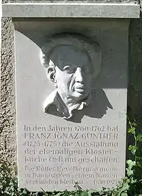 Memorial stone commemorating Ignaz Günther at the former abbey church in Rott am Inn