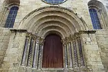 First construction began before 957, as evidenced by a document donated to Lorraine Monastery. It was rebuilt in the last decades of the twelfth century in the reign of Sancho I of Portugal. The elegant south portal probably dates to the late 12th century, and consists of several unpainted archivolts, surrounded by a vine-shaped frame, and capitals and columns with plant motifs. The four-arch portal in the front facade was built later. It capitals contain various motifs, both plant and animal, some derived from the Old Cathedral of Coimbra, and its columns are decorated with spiral-shaped geometric reliefs and plant motifs. The church interior has three naves and three chapels at its head. In the 15th century, a quadrangular chapel was added to the north side of the church, with a Gothic-style portal and a decorated chambranle.