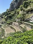 The Miramare gradually became more established and ultimately one of the more popular hotels on the Amalfi Coast. Cinque took to rowing his small fishing boat in the late afternoons to a headland two km south of Positano in the Laurito district that everybody knew as La Punta (The Point), where he dropped his lobster pots. It had a small beach, lush vegetation, and most notably was characterized by a tall cliff that abruptly met the sea. At the top was a small, white-walled fisherman's chapel called San Pietro. Cinque fell in love with it and resolved to buy the land from his brother-in-law, which he accomplished in 1962.[2][1] In 1962 when Cinque purchased the land it was described as "the promontory between Positano and Praiano, that is just a rock with a small 17th century chapel of San Pietro."[3][4] Positano, at the time, was a small fishing village, but it was gradually starting to attract the attention of tourists. Following this purchase, Cinque undertook a gradual expansion of the chapel into an apartment with a garden and terraces, doing his best to avoid disturbing the natural character of the land. His idea was to build a hotel that would blend in with the surrounding landscape.