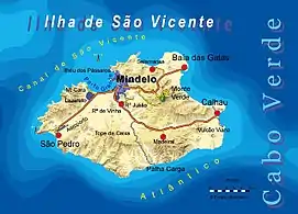 Ilhéu dos Pássaros is an uninhabited rocky islet in the bay of Mindelo, São Vicente Island, Cape Verde.[1] It lies about 1.3 km (0.8 mi) west of the headland Ponta João Ribeiro, and 3.5 km (2.2 mi) northwest of Mindelo city centre. It lies between the Porto Grande Bay and the Canal de São Vicente, the channel of the Atlantic Ocean that separates the islands of São Vicente and Santo Antão. There is a lighthouse on the islet.[2]