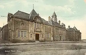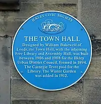 Ilkley Town Hall, on Station Road, Ilkley, West Yorkshire, is a Grade II listed municipal building designed by William Bakewell of Leeds. It forms the centre of a small complex of public buildings, which also includes Ilkley Library (a Carnegie library), and the King's Hall & Winter Garden theatre. The library, Town Hall and King’s Hall opened in 1908 opposite Ilkley railway station; the Winter Garden was added to the west in 1914.