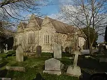 The churchyard includes fifty-two Commonwealth War Graves.,[10] and the grave of Thomas Merritt, whose carols are sung by Cornishmen worldwide and who was commissioned to write the 1902 Coronation March for Edward VII.[11] The Church, its tower, the Basset sarcophagus, a Cornish cross, and the gates at the north end of the churchyard are all Grade II Listed.[12] The Cornish cross in the churchyard is probably in situ.[13]