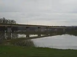 The Ilok–Bačka Palanka Bridge or the 25 May Bridge crosses the Danube at its 1297th kilometer, connecting the towns of Ilok, Croatia and Bačka Palanka, Serbia. It is the 825 meters long single-carriageway road bridge, built as a box girder construction. It was opened in 1974 as the "25 May" Bridge, named after the birthday of Yugoslav leader Josip Broz Tito. The bridge was damaged by airplane bombs during the NATO bombing of Yugoslavia on 4 April 1999. After reconstruction, it was opened for truck and bus traffic on 30 April 2002.[1][2]