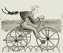 In the late 1940s, Bischoff took a course in creative writing taught by Mabel Robinson at Columbia University. She said writing came easily to her but felt she did not have it in her to write literary fiction. She recalled thinking that, as she later said, she "didn't have anything to say in a novel".[3] Her one effort at fictionalized biography, Proud heritage (New York, Coward-McCann, 1949), did not please her and received mixed reviews.[38][39][40] She herself said the book was "awful".[3] However, both the reviewers and she personally liked two other books she wrote, one a children's story and the other a memoir. The Wonderful poodle (New York, T. Y. Crowell Co., 1949) received a lengthy review in The New York Times that concluded, "It all adds up to a story full of tenderness and humor. Miss Bischoff's illustrations present the staid splendor of the castle and the robustiousness of peasant life with equal grace".[41] A reviewer for the Chicago Tribune summarized the plot and wrote, "The story, although not especially original, will appeal to youngsters for its loving boy-dog relationship. And the author's illustrations, highly stylized, are truly distinguished'.[42] A reviewer for the Louisville Courier-Journal said, "the illustrations give color, intensity and more meaning to the tale of one little Hungarian Prince Rudolf and his remarkable poodle. Almost any question brought up by the locale of the story is answered so clearly for the child in pictures and the tale is told with such a quality of warmth and feeling that any child will get a rich experience in human emotions from it".[43] An illustration from page 20 of the book is shown at left.