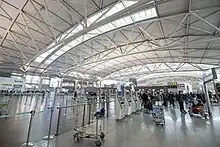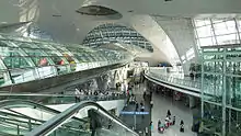 The passenger concourse was completed at the end of May 2008. It is connected to Terminal 1 by two parallel 870-metre-long (2,850 ft) underground passageways equipped with IATs (Intra Airport Transit). It has 30 gates and six lounges[27]