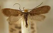 The wingspan is 12–16 mm. The moth flies from April to May depending on the location.