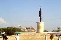The monument is located in the historic center of Cartagena. St Felipe castle in the background