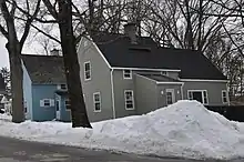 The village was created as a model planned company town for its workers by the Norton Grinding Company in 1915.[3] Its design is attributed to Grosvenor Atterbury, who designed the South Village (since compromised by the construction of I-190), and the home of Aldus Higgins, then president of the Norton Company. The company established the Indian Hill Company as a worker real estate subsidiary in 1914, when the South Village was developed. The exact construction dates of the North Village complex is not known, but it probably took place with great rapidity during World War I, when there was an acute housing shortage. Unlike the South Village, whose properties were immediately sold (at cost) to company employees, the company retained ownership of most of the North Village until the 1920s. The complex is unique in Worcester, whose other major employers have no history of similar developments.[2]