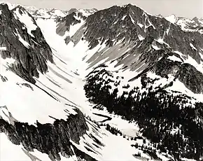 During the Pleistocene period dating back over two million years ago, glaciation advancing and retreating repeatedly scoured and shaped the landscape.[6] The U-shaped cross section of the river valleys is a result of recent glaciation. Uplift and faulting in combination with glaciation have been the dominant processes which have created the tall peaks and deep valleys of the North Cascades area.