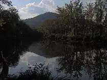 Elk Creek splits Indian Mountain State Park into eastern and western halves. The western half is dominated by the 6-acre (0.024 km2) Indian Mountain Lake, which spans the base of Indian Mountain and forms the southern and western boundary of the park's campground. Ballard Lake, a large pond slightly smaller than Indian Mountain Lake, dominates the park's eastern section. Several smaller ponds are scattered along the park's northern and southern boundaries. Elk Creek, which drains the park, is part of the Cumberland River watershed.