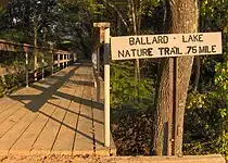 Two official walking trails meander through the park on both sides of Elk Creek. The Indian Mountain Lake Trail is a paved 1-mile (1.6 km) loop that wraps around the east bank of Indian Mountain Lake. The .75-mile (1.21 km) Ballard Lake Nature Trail loops along the forested banks of Ballard Lake. A third unmarked half-mile trail wraps around the pond in the southeast section of the park.[5]