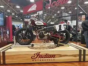 The Indian Scout FTR750 is a competition-only motorcycle engine made by Indian Motorcycle Manufacturing Company for flat track racing. It is a fuel-injected, liquid-cooled, four-valve-per-cylinder V-twin.[1] A single-pin crankshaft riding on plain bearings carries side-by-side steel connecting rods.[2] It is the first all-new flat track racing motor from Indian Motorcycle in decades.