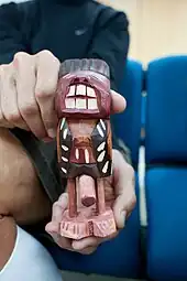 The indio pícaro (saucy Indian) is a traditional Chilean wooden statuette referencing a Mapuche Indian with a broad smile that, when the body is lifted, shows an erect penis or pubic hair (Guacolda or india pícara). The indio pícaro is found in traditional artisan shops in south-central Chile. It is usually made of wood, and generally viewed as a gag gift or joke, sometimes as decoration.
