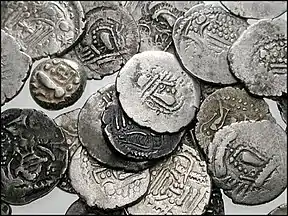 - ↑ "The Indo-Sassanian coins, also termed as Gadahiya and circulated from 600 to 1200 A.D., are found in good numbers from Ahmadahad, Banaskantha, Bhavanagar, Junagarh, Kaira, Kutch, Mehsana, of Gujarat." in The Journal of Academy of Indian Numismatics & Sigillography. Academy of Indian Numismatics & Sigillography. 1988. p. 145.