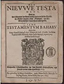 - ↑ Even now, Javanese is the language with most native speakers in the country (see Languages of Indonesia). One century ago, this was no different: the 1905 census showed that of 37m "natives", nearly 30m hailed from the isles of Java and Madura alone: neither they nor many other natives from the "outer islands" were Malay (cf. Bezemer 1921, p. 64).