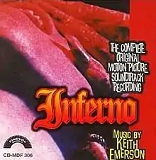 Inferno is the soundtrack to Dario Argento's film of the same title, first released as a 15-track LP in 1980 on Atlantic Records (K 50753), in 1981 by Cinevox, then as a CD in 2000, with a bonus track of outtakes reportedly utilized in the film itself, but not included on the original vinyl release. The score was composed and performed by keyboardist Keith Emerson, former member of the progressive rock band Emerson, Lake & Palmer.